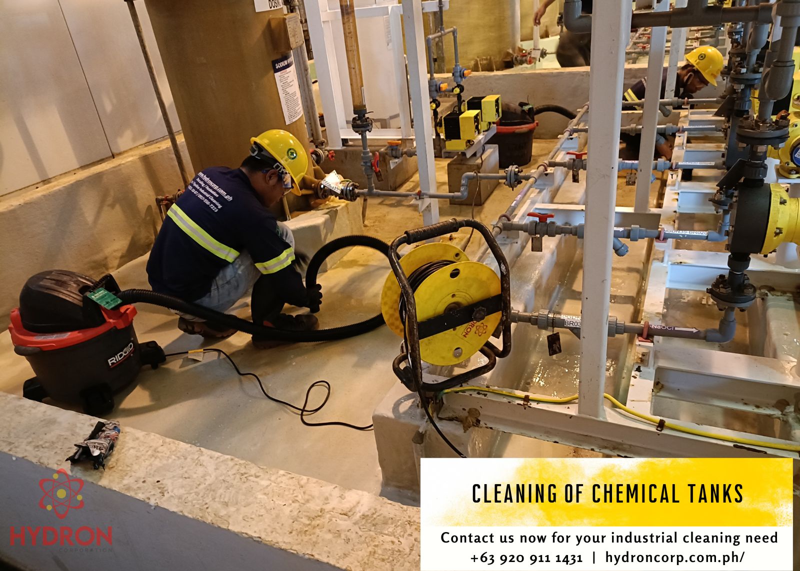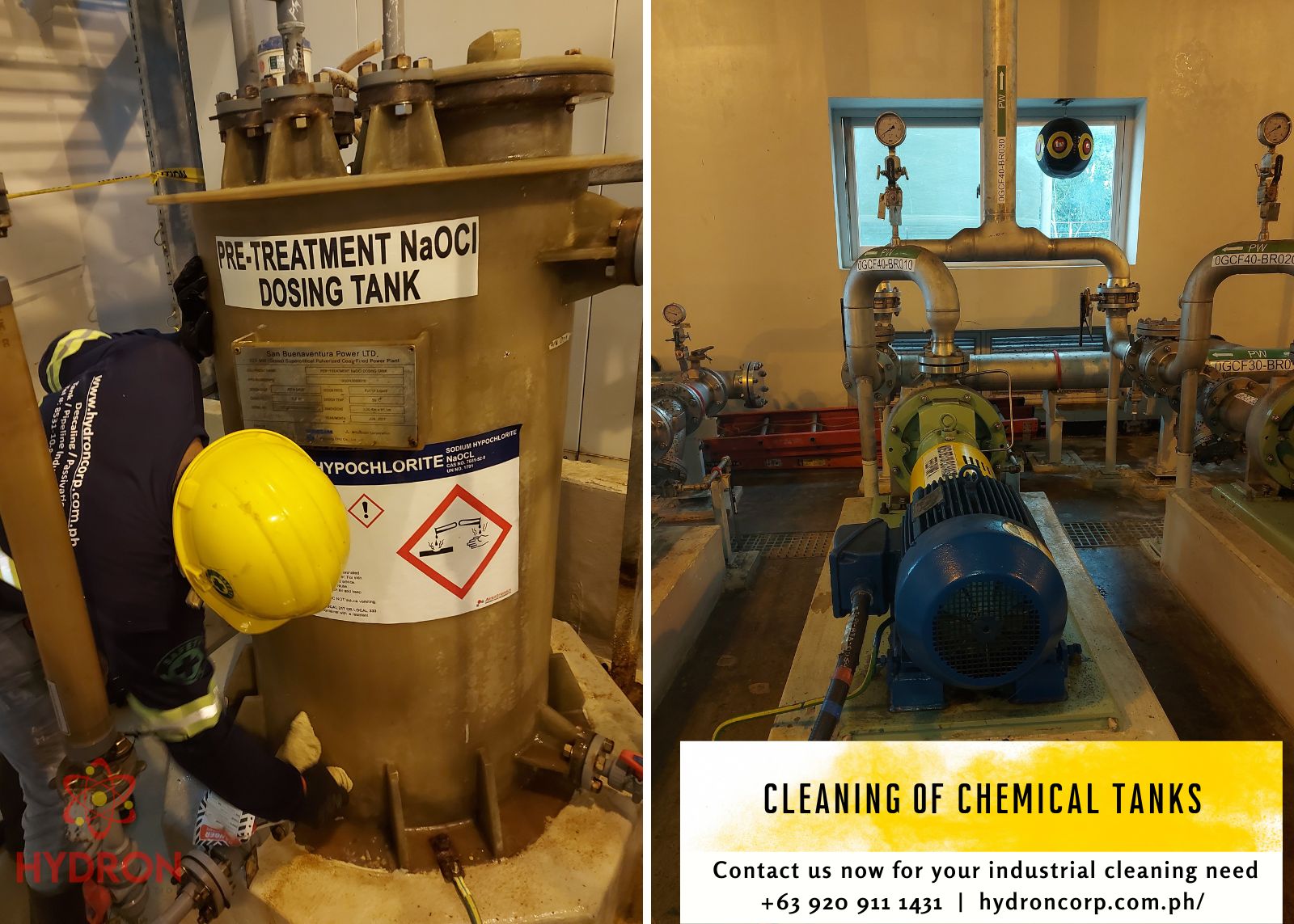 Cleaning of Chemical Tanks using the following chemicals: antiscalant, sodium bisulfite, sodium hypochlorite, sodium bicarbonate, calcium chloride, flocculant ATMP